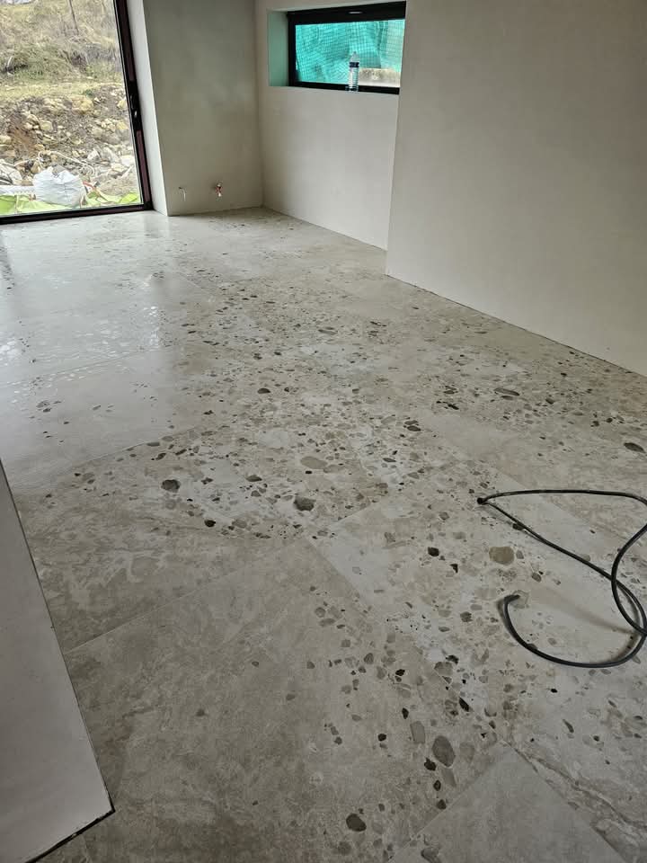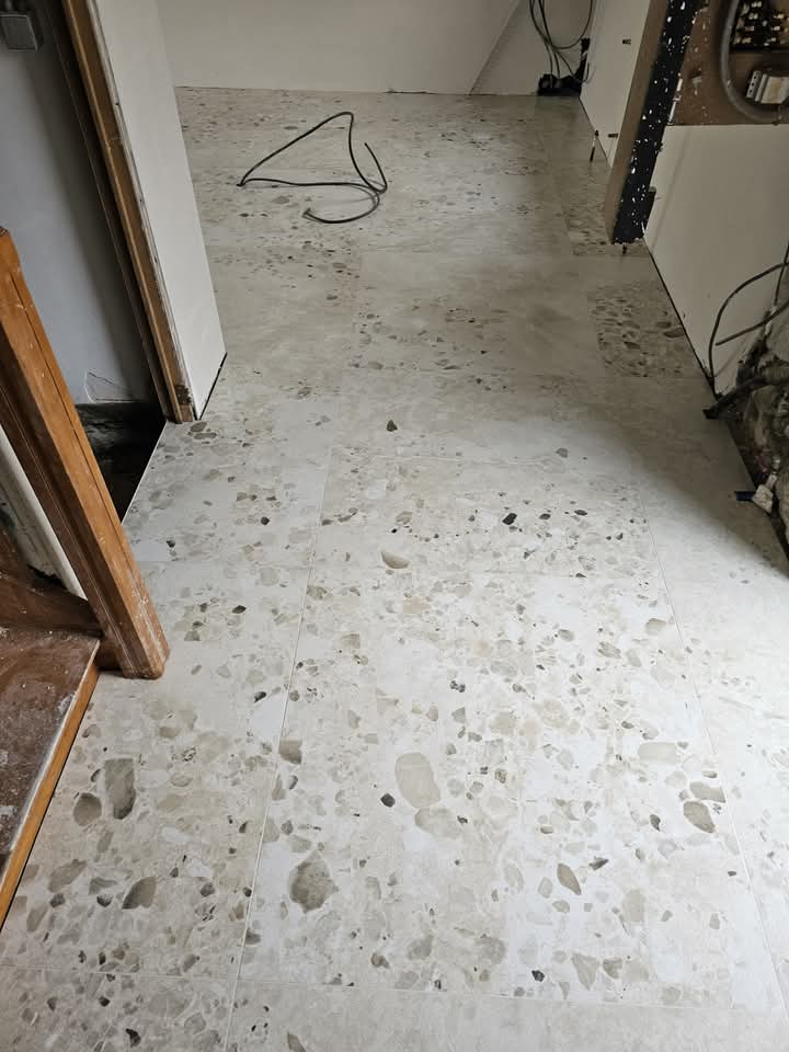 Un beau chantier de rénovation dans une vieille bâtisse en plein cœur d’Angers ! Ici, on a repris entièrement la zone baignoire et WC avec une attention toute particulière sur les détails. Après avoir appliqué un primaire d’accrochage pour assurer une bonne tenue, on est passé à un ragréage fibré pour corriger les irrégularités du support. Une étanchéité complète a ensuite été réalisée sous la faïence, indispensable dans ce type de pièce humide. Côté revêtement, on a opté pour un carrelage Terrazzo au sol – à la fois tendance et intemporel – et des zelliges posés derrière la baignoire et les WC pour une touche artisanale et chaleureuse. Une réalisation soignée, dans le respect des règles de l’art, pour redonner tout son cachet à cette salle d’eau.
