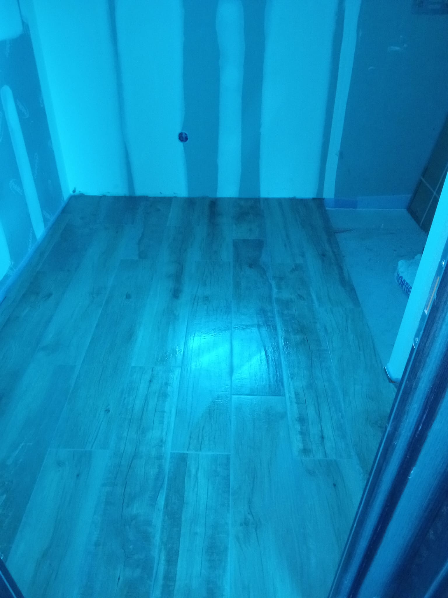 Nous avons réalisé la pose d’un carrelage grand format 80×80 dans une maison neuve, couvrant le salon, la cuisine, l’entrée, les WC ainsi que la buanderie. Pour la salle de bain, le choix s’est porté sur un carrelage imitation bois 150×25, apportant chaleur et modernité à la pièce. Ce chantier mené à Brissac-Quincé met en valeur un style contemporain, avec des finitions soignées et un rendu harmonieux dans chaque espace.