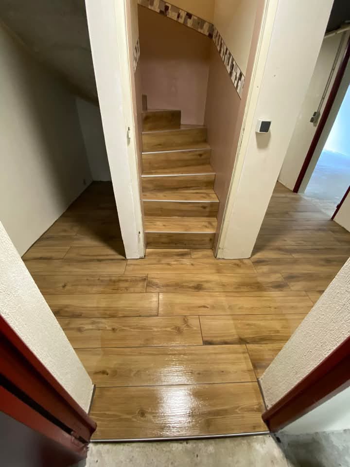 Pose d’un carrelage dans un escalier et couloir